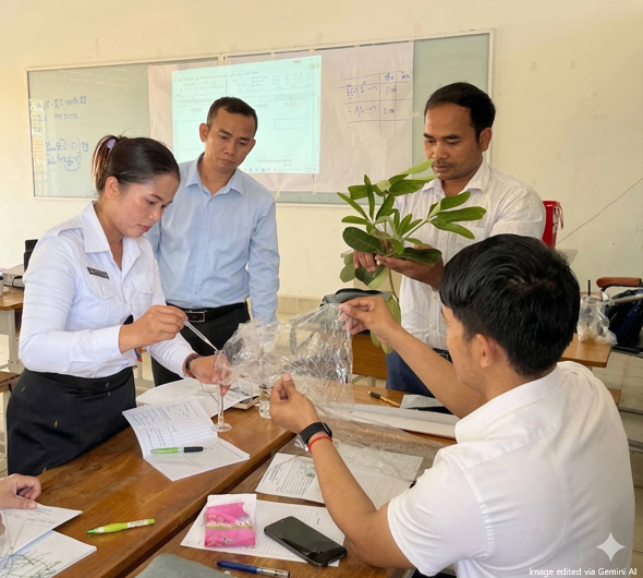 - Backward Design Framework: Teachers are learning to start with desired learning outcomes and design meaningful assessments first. (※ The attached two photos below illustrate the leaf classification of plants in the design lesson plan.)